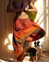 Drop crotch 100% thick cotton Thai pant with elastic waist and ankle. Deep pockets with wooden buttons